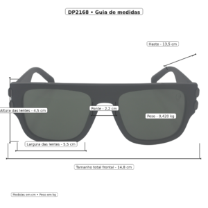 O DP2168 Polarizado Premium foi pensado para homens e mulheres que desejam um óculos de sol com aparência robusta, visual sofisticado e forte apelo fashion. É um modelo versátil, ideal para compor produções casuais, urbanas e contemporâneas, sempre transmitindo bom gosto e presença.